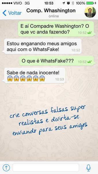 WhatsFake ZapZap é um aplicativo para criar conversas no WhatsApp falsas. Faça montagens divertidas no seu iPhone simulando bate-papos com amigos, parentes e até famosos.